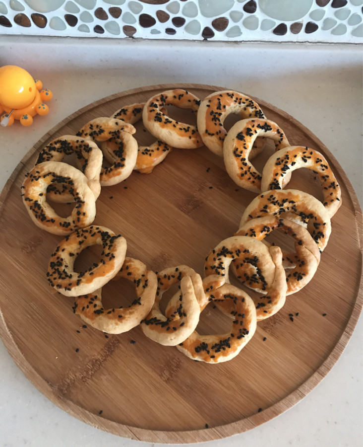 Neyse efendim şimdi gelelim bu mis kokulu simitlere... İsimlerinden de anlaşılacağı üzere gevrek mi gevrek kıvamları var. Bu gevrekliği sağlayan şey tereyağının yanı sıra sirke. Sirke miktarı fazla gibi görünebilir ama asla değil. Malzeme miktarına göre tam kararında. Hamura eklendiğinde hamurda bir miktar sirke kokusu hissediliyor ama kurabiyeler pişerken kokunun tamamı uçuyor ve simitler sadece mahlep ve tereyağı kokuyor. Sirkeden geriye de simitlere kattığı çok hafif ekşimsi bir peynir tadı kalıyor. Özetle sirke sayesinde kurabiyeler peynirli gibi oluyor.