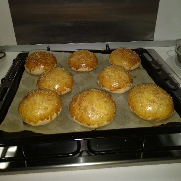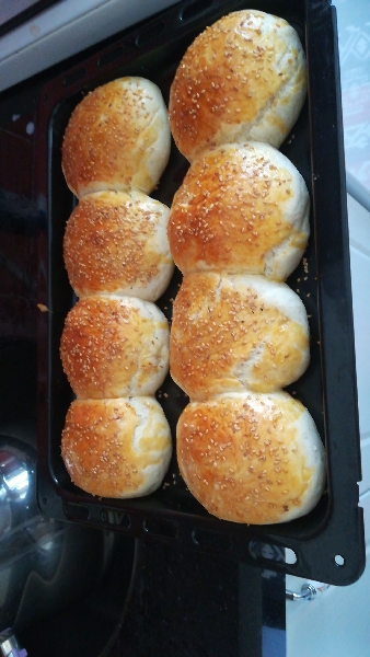 Orta büyüklükte 8 adet ekmek çıkıyor bu malzeme miktarıyla. Ama sizin yapacağınız büyüklüğe göre bu miktar değişecektir elbette. Örneğin hamburgerli davet sofrası için minik denebilecek hamburgerler hazırlamış ve yaklaşık 20 adet hamburger ekmeği elde etmiştim aynı ölçüyle.