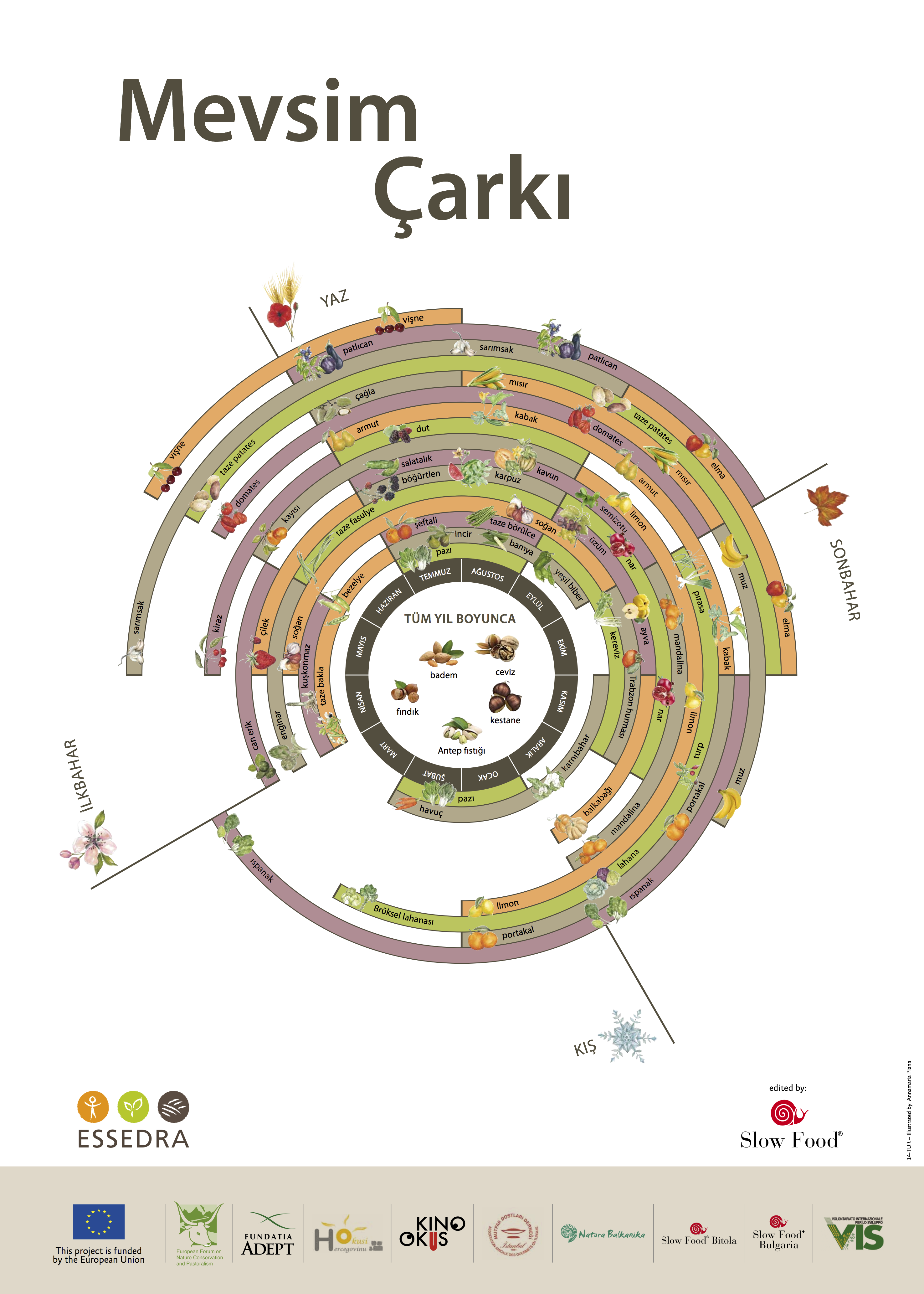Geçtiğimiz günlerde bir okuyucum sormuştu elimde böyle bir liste olup olmadığını. Ama ne yazık ki böyle bir listem yoktu. Üzerinden çok geçmeden Slow Food bu çarkı yayınladı. Ben de daha fazla kişiye ulaşması için paylaşmak istedim.