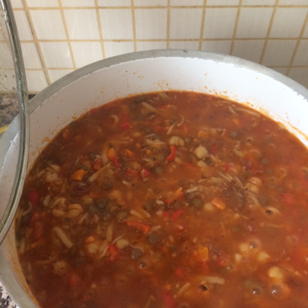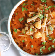 Malzemesinin çeşitliliği ve bolluğu nedeniyle çok doyurucu bir çorba. Benim tek başına içerek karnımı doyurabileceğim türden hatta. İçinde erişte ve şehriye olduğu için ekmeğe bile gerek yok yanında. Tabi kalabalık aileler için durum daha farklı. Yanında hafif bir ana yemek yapılmalı mutlaka. Ama pilav ya da makarnaya gerek yok örneğin. Karbonhidrat tüketimini belli bir seviyenin altında tutmakta fayda var günümüz hareketsiz yaşamında. Menülerinizi belirlerken en fazla dikkat etmeniz gereken şeylerden biri budur.