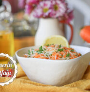Hemen akşamına yoğurtlu alabaş salatası ve ertesi gün de uzun süredir yemediğimiz bu salatayı yaptım. Tam bir sonbahar-kış salatası. Sebze yemeklerinin yanına da et yemeklerinin yanına da çok yakışıyor ama bence asıl yeri balık sofraları.
