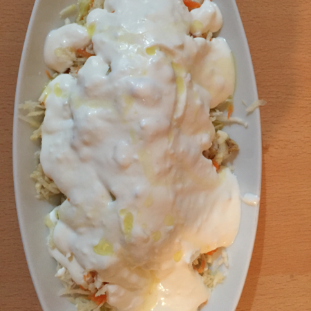 - Yoğurt, mayonez, ezilmiş sarımsak ve tuzu ekleyip karıştırın,