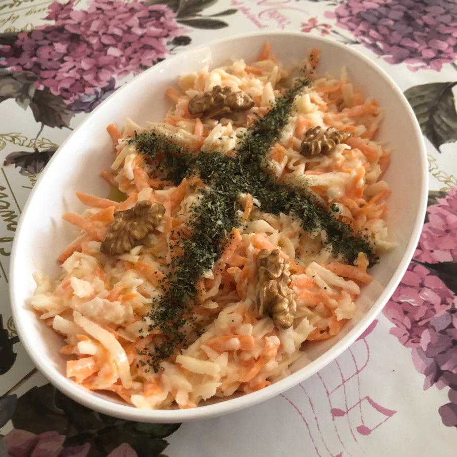 Kereviz salatası bir dönem çok meşhur olmuştu, sanırım Yemekteyiz programının etkisiyle. Ama son dönemlerde eski popülerliğini yitirdi. Ama benim gönlümde hala bir numaralı salatalardan biri. Özellikle havuçla birlikte yapıldığında yemeye doyamıyorum. Havuç hem güzel renk veriyor hem de ayrı bir lezzet katıyor. Sanki kerevizin lezzetini destekleyerek daha da ortaya çıkarıyor.