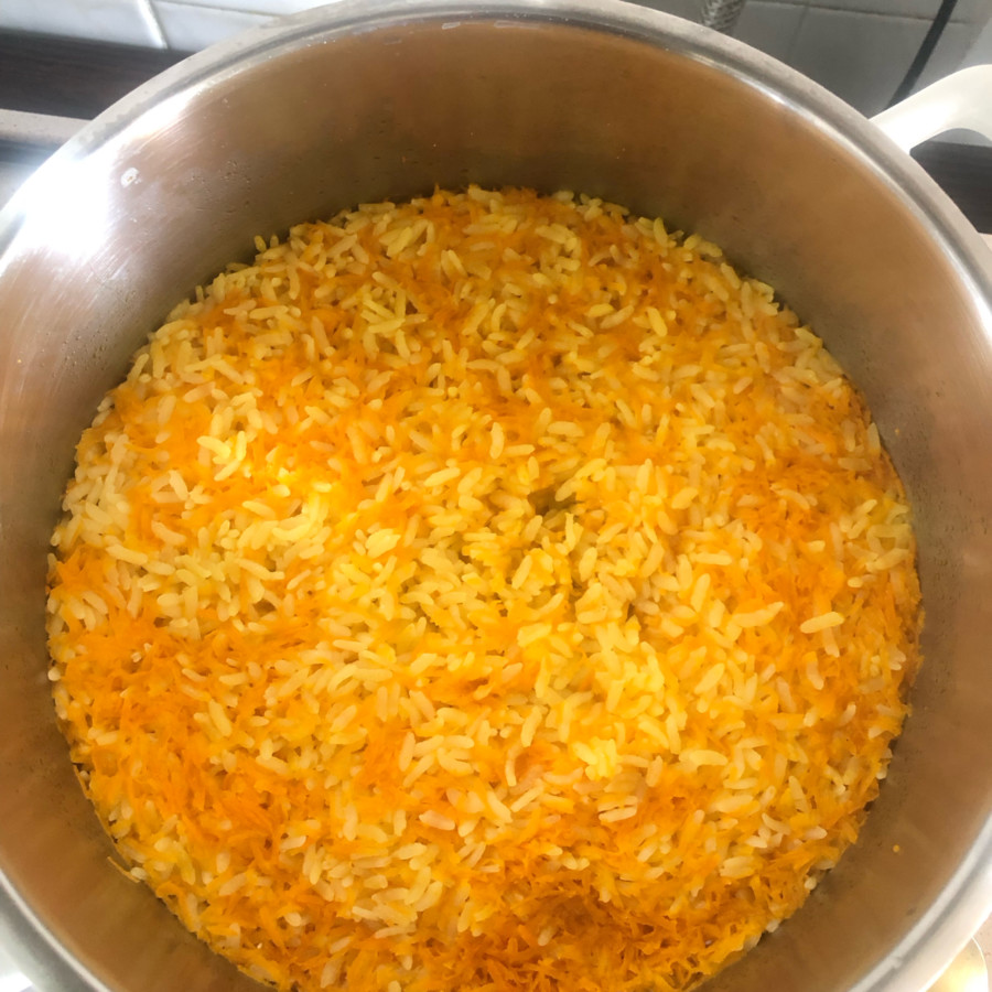 Havuçlu pilav hem rengiyle göz alıcı hem de çok lezzetli oldu. Teriyaki soslu tavuk pirzola ile de çok yakıştı.