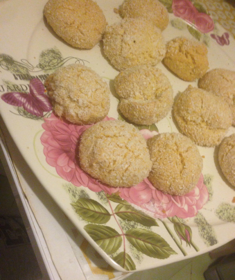 - Hamurdan cevizden küçük parçalar alıp yuvarlayın ve kenara ayırdığınız hindistan cevizine bulayın,
