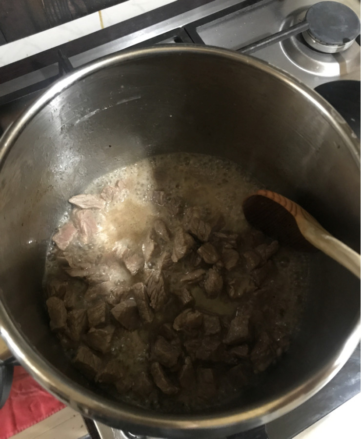 - Eti ekleyip suyunu salıp çekene kadar karıştırarak pişirin,