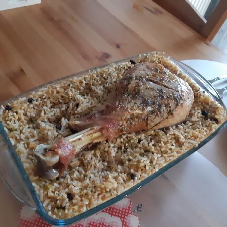 Yılbaşında evde yemekli bir kutlama yapılacaksa adettendir hindi veya tavuk pişirilir genellikle. Eşlikçisi de iç pilav olur büyük ihtimalle. İşte bu tarifte ben ikisini harmanlayıp fırında iç pilavlı yaptım hindiyi. Bütün hindi kullanmaktansa hindinin en lezzetli yeri olan butlarını kullanmayı tercih ettim. Sonuç çok başarılı oldu. Hem hindiler iyi pişmişti, hem de pilav parmak yedirtecek kadar lezzetliydi.
