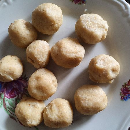 - Dış harçtan mandalinadan küçük toplar koparıp yuvarlayın ve baş parmağınız ile ortasını delip olabildiğince geniş bir boşluk oluşturun,