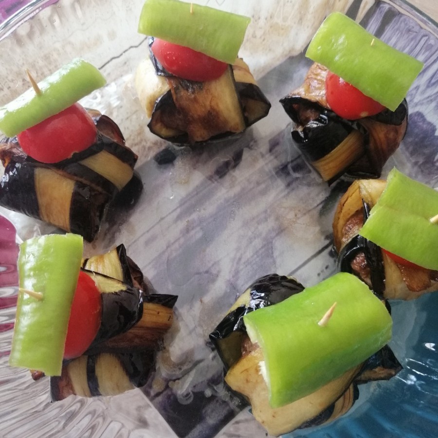 - Köfteleri 2 dilim patlıcan ile bohça gibi sarın ve üzerlerine birer adet kürdan batırın ve fırın tepsisine alın,