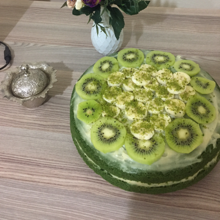 - Kalan krema ile kekin üzerini ve yanlarını kaplayın,
