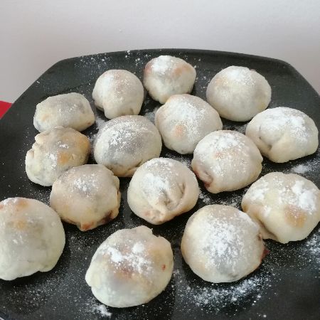 - Her bir hamurun içine bir parça çikolata koyup kapatın ve alttan artan hamuru koparın (olabildiğince hızlı davranın, şekli güzel olsun diye oyalanmayın),