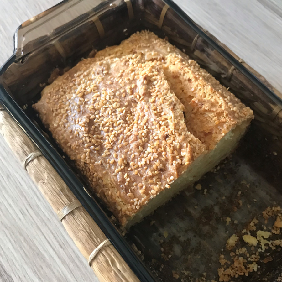 - Yağlamış olduğunuz 26*12 cm'lik baton kalıba döküp üzerine susam serpin,