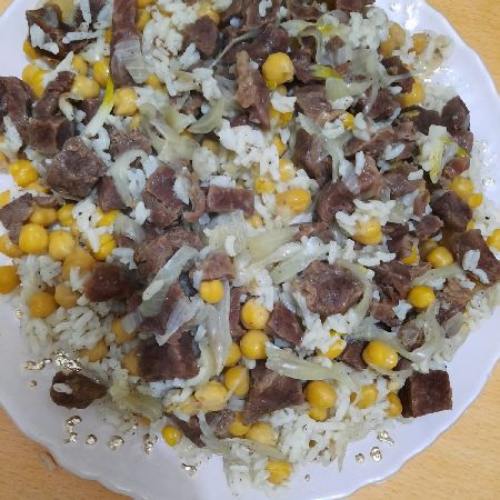 - Etlerin üzerine haşlanmış nohutu ve onun üzerine de yıkayıp süzdüğünüz pirinci yayın,