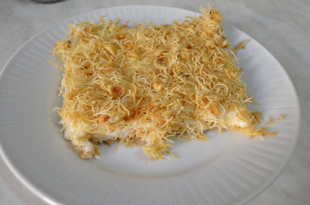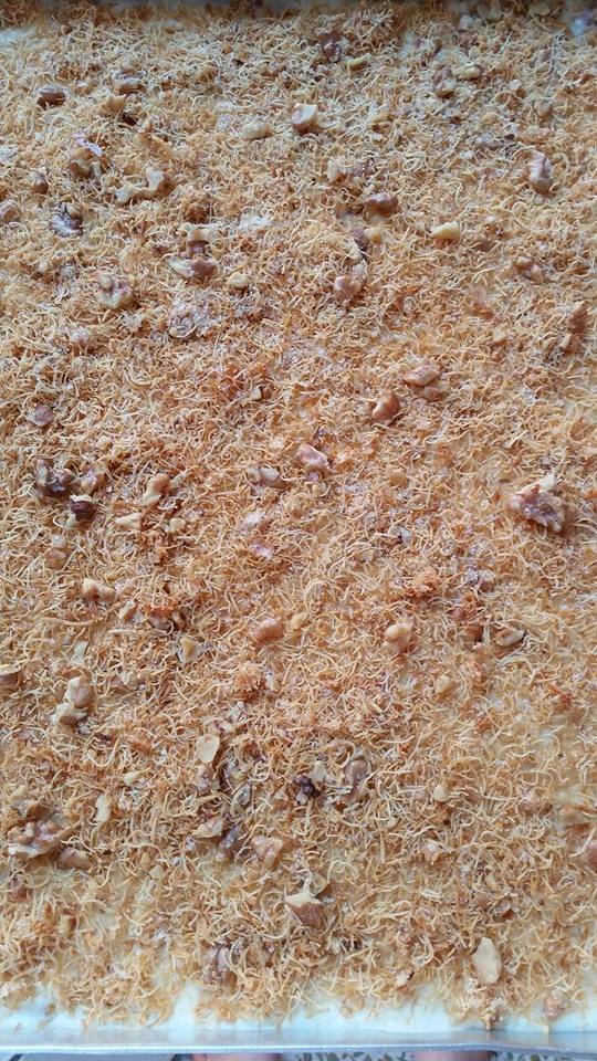 - Kalan kadayıfı muhallebinin üzerine eşit şekilde serpin,