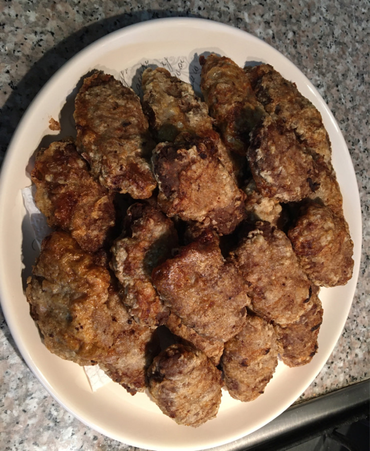 - Dinlendirdikten sonra uzun köfte şekli verip elinizle bastırarak yassılaştırın,