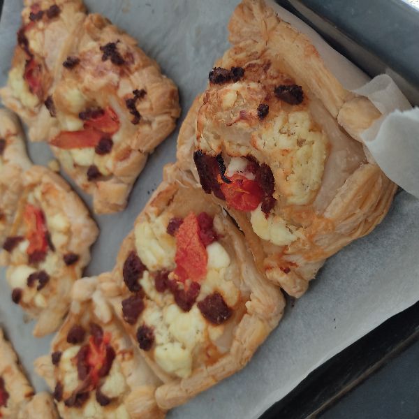 Malzemeleri istediğiniz şekilde çeşitlendirebilirsiniz. Kaşarlı sucuklu veya salamlı da çok iyi olacaktır mesela. Ama normal pizzada olduğu gibi sevdiğiniz tüm malzemeleri üst üste dizerek yapamazsınız ne yazık ki. Milföy çok hassas bir hamur olduğu için üzerine o kadar malzeme yığarsanız kabarma alanı bulamaz ve malzemelerin altında kalan kısım hamur olarak kalır. O yüzden en güzeli peynir ve üzerine bir malzeme şeklinde bir dizilim yapmak.