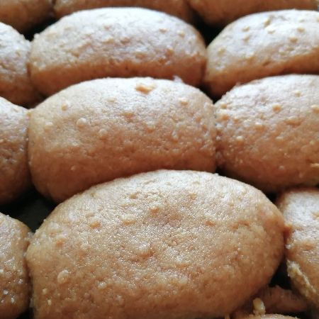 - Hamurdan cevizden büyük mandalinadan küçük toplar yapın,