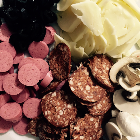 - Sırasıyla kaşarı, sucuğu, mantarları, biberleri, mısırı ve zeytini pizzanın üzerine yayın,