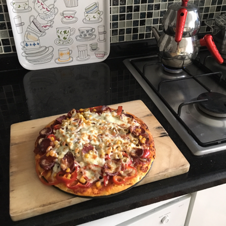 Pizza dünya genelinde akşam yemeği olarak kabul görse de bizde kullanılan malzemelerin neredeyse tamamı kahvaltılık malzeme olduğu için kahvaltılarda da yapılır pizza bir anne spesiyali olarak. Bunu öğrenmem çok geç oldu benim aslına bakarsanız. Blog yazmaya başladıktan sonra aldığım yorumlarda gördüm pizzanın bazıları tarafından kahvaltılık olarak görüldüğünü. İlk başta yadırgamıştım itiraf ediyorum, hatta eminim birçoğunuza da garip geldi şu an. Ama şöyle bir durup düşününce neden olmasın diyor insan. Ekmeği, peyniri, sucuğu, zeytini, vs. zaten kahvaltıda tüketiyoruz severek. Bunların hepsini bir araya getirip kahvaltıda yemenin nesi garip olsun ki?