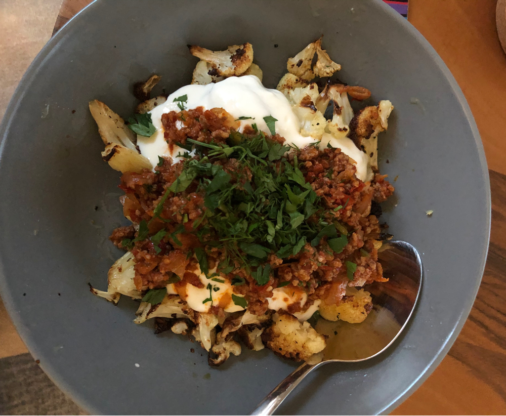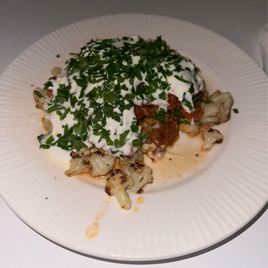 Instagram'dan karnabaharlı tarif fikirleri istemiştim. O zaman ortaya çıktı bu tarif. Tavsiye edilen tariflerin çoğu kıymalıydı. Blogta yirmi küsur karnabaharlı tarifim var. Bir kıymalı karnabahar bir de tavuklu karnabahar tarifi dışında karnabaharı etle bir araya getirmedim. Bu iki tarif de çok talep edildiği için yaptım. Karnabaharı severim ama kendi başına severim, yanına kıyma geldiği zaman çok tercih etmediğim bir yemeğe dönüşüyor. Aslına bakarsanız sadece karnabahar için geçerli değil bu, ben sebze yemeklerinin içine kıyma koyulmamasını tercih ederim. Kıymalı patates, karnıyarık gibi birkaç istisnam var elbette. Onların yeri ayrı:)