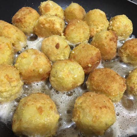 5. Patates toplarını önce yumurtaya ardından çekilmiş mısır gevreğine bulayıp kızgın yağda kızartın.