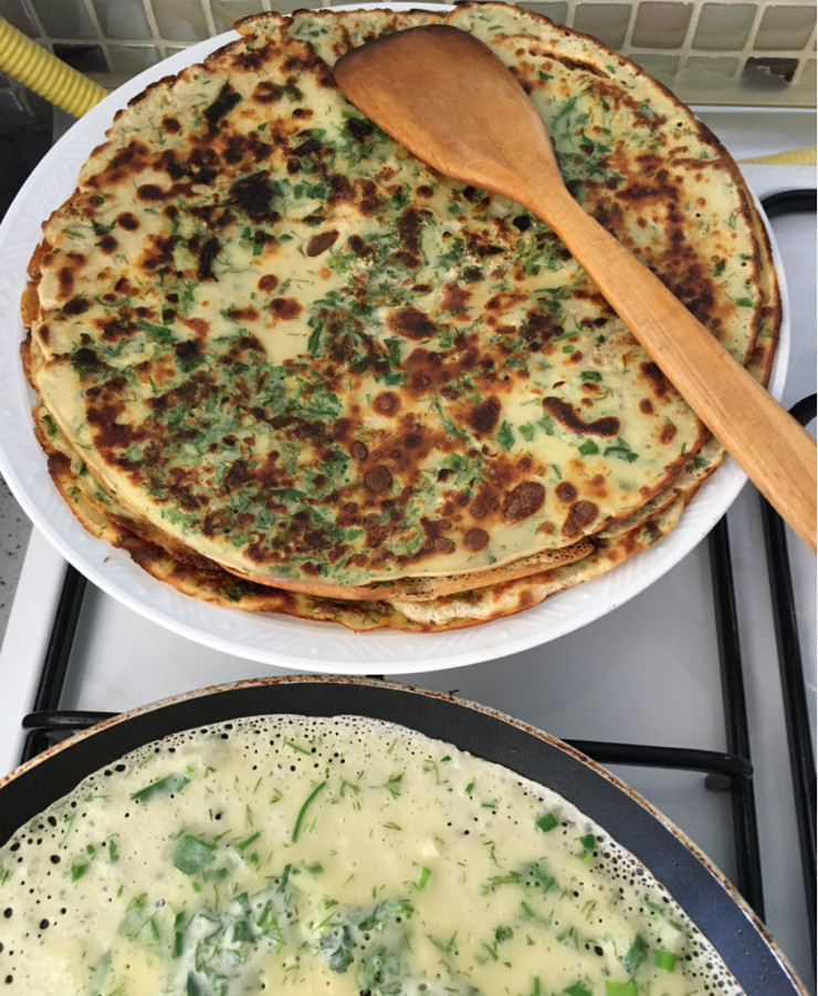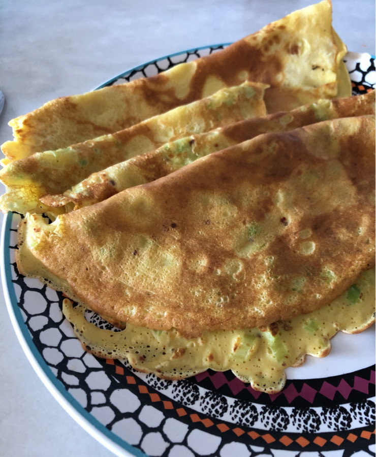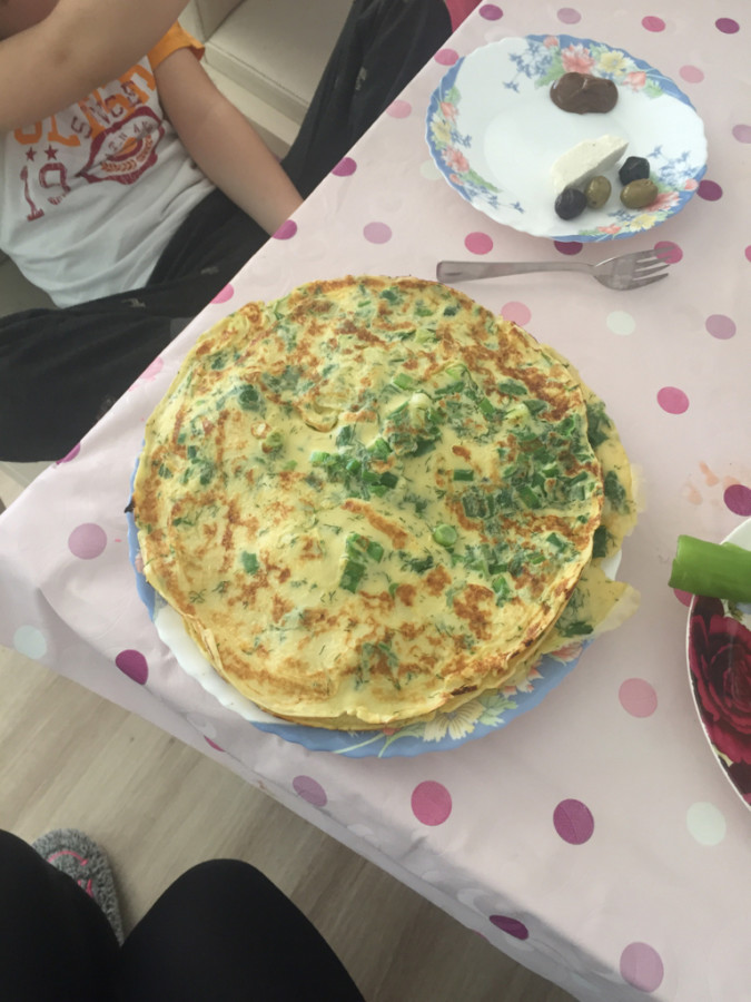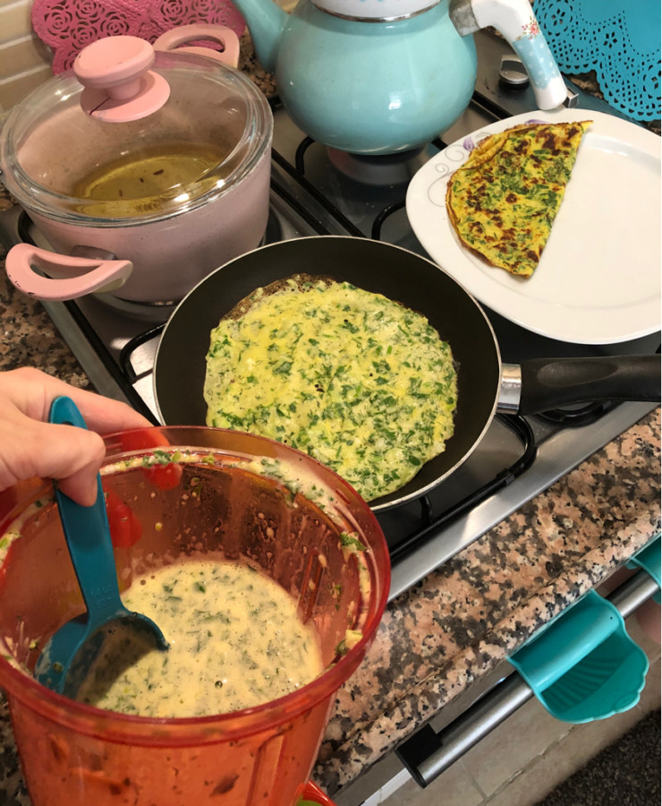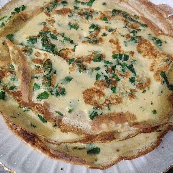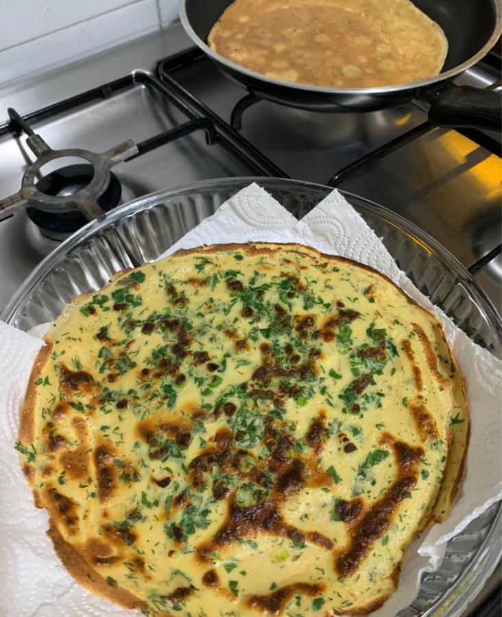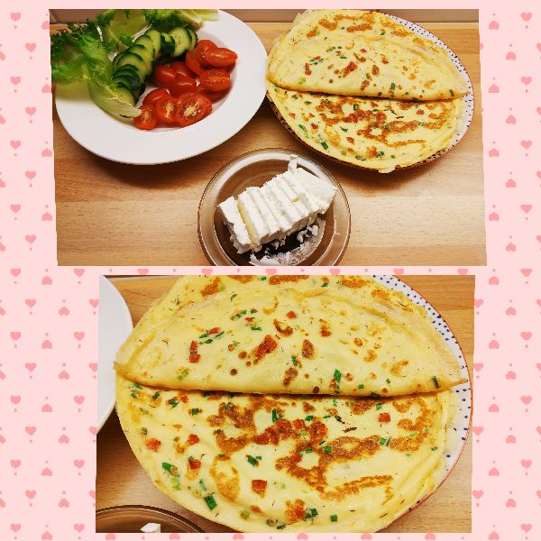Yumuşacık, kırılmadan eğilip bükülebilir bir kıvamı var. Yumurta kokmuyor. Soğuduğunda bile kaskatı olmuyor. Hamuru ince döktüğüm için hem hamuru hem de yeşillikleri güzelce pişiyor. Kahvaltıda peynirle afiyetle yeniyor.