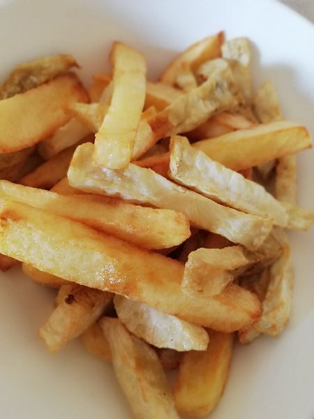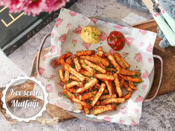 Ben genellikle balığı fırında yaptığım için yanında yaptığım yardımcıların kalorisini düşüreyim gibi bir derdim olmuyor. Patatesleri balıkla birlikte fırına atmamışsam kızartmayı tercih ediyorum. Bunu zaman zaman kereviz için de yapıyorum. Kuru köfte, fajita ve parmak tavuk gibi yemeklerin yanı sıra fırında baharatlı alabalık gibi balık yemeklerinin yanına da çok yakışıyor yani.