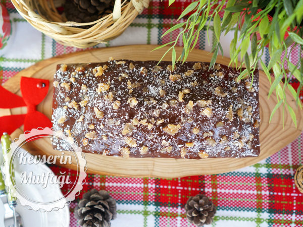 - Sosun üzerine kestane parçaları ve hindistan cevizi serpin,