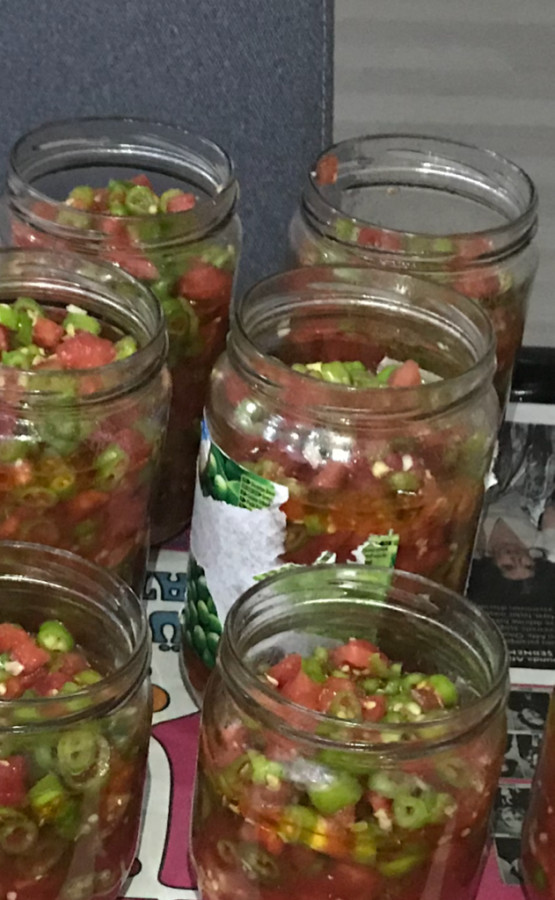 Turşumuza gelecek olursak... Çok fazla miktarda yapılmadığı sürece yapımı kolay. Hele de yardım edecek birini bulursanız çocuk oyuncağı. Gözünüz korkmasın kısacası. Biberleri doğrarken eldiven takmayı unutmayın ki sonrasında el yanmasından kaynaklı uykusuz geceler geçirmeyin. Domatesleri rendelemeyin, doğrayın, çok fazla su salmalarına ihtiyacımız yok.