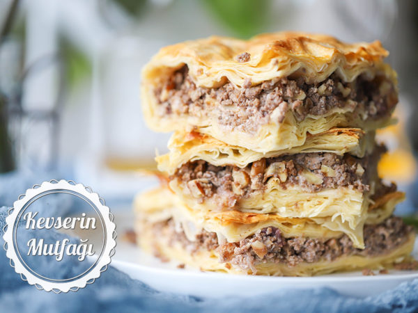 Klasik kıymalı börek harcı yerine biraz daha zengin bir harç kullandım yalnız. Azıcık çekilmiş ceviz ve kuş üzümü de ekledim. Dilerseniz kullanmayabilirsiniz ama bence kullanın:)