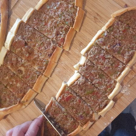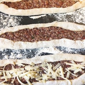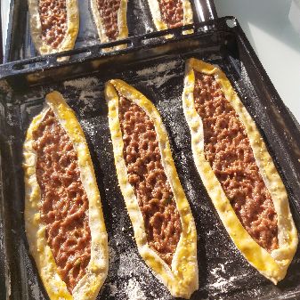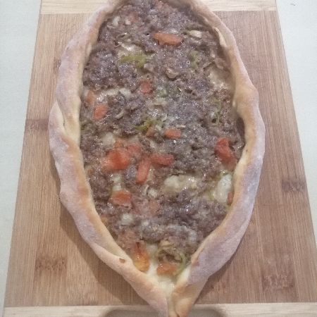 İlk pide denememde bu tariften daha az bir harç kullanıp hamurun üzerine yaydım göz ucuyla pide ustalarından gördüğüm gibi. Oldu ama tam istediğim gibi olmadı. Sonra malzemeyi arttırıp bol kullandım ve istediğim orana ulaştım. Lahmacun hamuru incecik çıtır çıtır olduğu için harcı az olsa da çok eksikliği hissedilmiyor ama pide daha kalın hamurlu olduğu için harcı az geldiğinde sadece hamur yiyormuşum gibi hissediyorum. Malzemeden çalmıyorum, iç harcını bol tutuyorum. Ben bu şekilde seviyorum ama derseniz ki ben biraz daha etli ekmek gibi severim pideyi, hamuru inceltip malzemeyi azaltabilirsiniz.