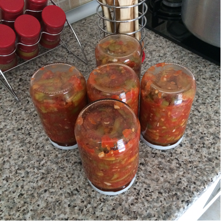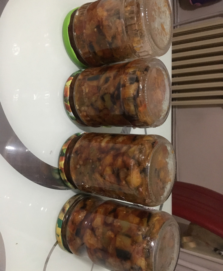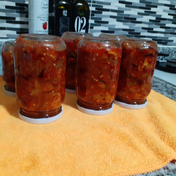 Bu malzeme miktarıyla fotoğrafta gördüğünüz kadar konserve çıktı. 3 tanesi 750-800 ml'lik kavanozlar. 2 tanesi de 300 ml civarında sanırım.
