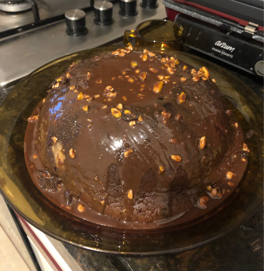 - Muhallebiyi bekletmeden kasenin içine yerleştirdiğiniz kekin üzerine dökün,