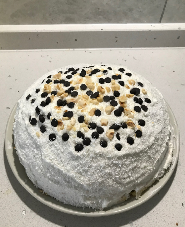 - Üzerini hindistan cevizi ize kaplayıp istediğiniz şekilde süsleyin.