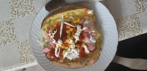 Patatesin her türlüsünü seven biri için kumpir patatesli tariflerin kralıdır sanırım. Patatese en çok yakışan mısır, bezelye, havuç, turşu, ketçap, mayonez içindedir. Bunlarla da sınırlı değildir elbette. Damak zevkinize uygun her türlü malzemeyi ekleyebilirsiniz. Közlenmiş biber çok yakışır mesela bence, mısır cipsi kıtır kıtır farklı bir lezzet katar. Kısacası malzemeleri ne sevdiğinize, ne kadar sevdiğinize göre istediğiniz şekilde değiştirebilirsiniz.