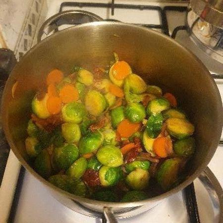 Ben lahanalar çok dağılmasın diye ikiye bölerek kullandım. Ama dağınık görüntüyle ilgili sıkıntınız yoksa dörde bölerek daha kolay pişmelerini sağlayabilirsiniz. Brüksel lahanası ve kurutulmuş domatesi ilk kez bir arada denedim ve çok sevdim. Brüksel lahanasının tek başına biraz yavan bir tadı vardrı malum. Domatesin hafif tatlı-ekşi aromasıyla birleşince bambaşka bir hal aldı.