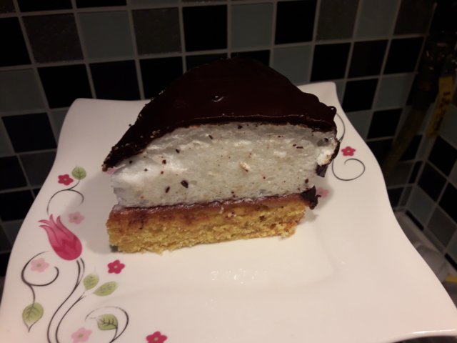 Bu arada tarifte 4 yumurta akı var ve ben de öyle yapıyorum normalde. Ama bu fotoğraf çekildiğinde elimde başka bir tariften artan 2 yumurta akım daha vardı, onları da ekledim. Mereng tabakanız bu kadar kalın olmayabilir yani. Bu 6 yumurta akı ile yapıldı.