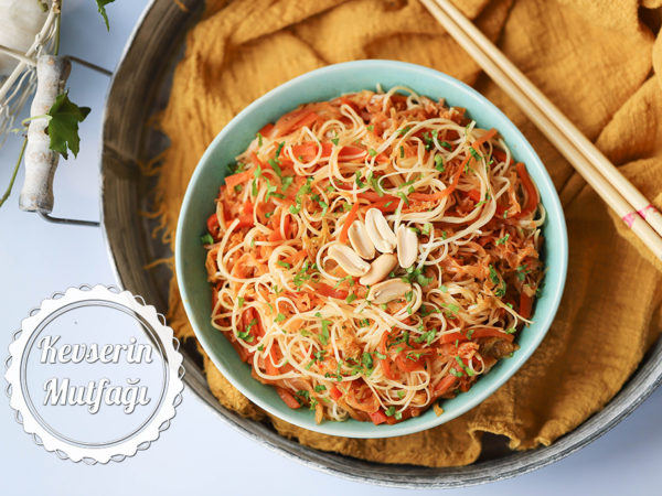 Çinlilerin meşhur yemeği noodle. Dana etli, tavuklu ve sebzeli şekilde farklı yöntemlerle hazırlanarak yenebiliyor. Sebzeli olanda havuç, lahana, biber ve kabak ağırlıkta oluyor. Aslına bakarsanız son yıllarda Amerikalıların yoğun rağbetinden dolayı neredeyse Çin yemeği olmaktan çıkıp Amerikan mutfağına dahil olmaya yaklaştı. Sıcak su eklenip 1-2 dakika içinde hazır hale gelebilen fabrikasyon türevlerinin çıkması ve fast food dediğimiz hızlıca hazırlanıp yenebilir hale getirilmesiyle ilgi daha da arttı sanıyorum. Eskiden bizim marketlerde sadece ithal ürünler reyonunda birkaç çeşidi olurken son zamanlarda yerli markaların da pazara dahil olmasıyla bizde de bulunabilirliği arttı.