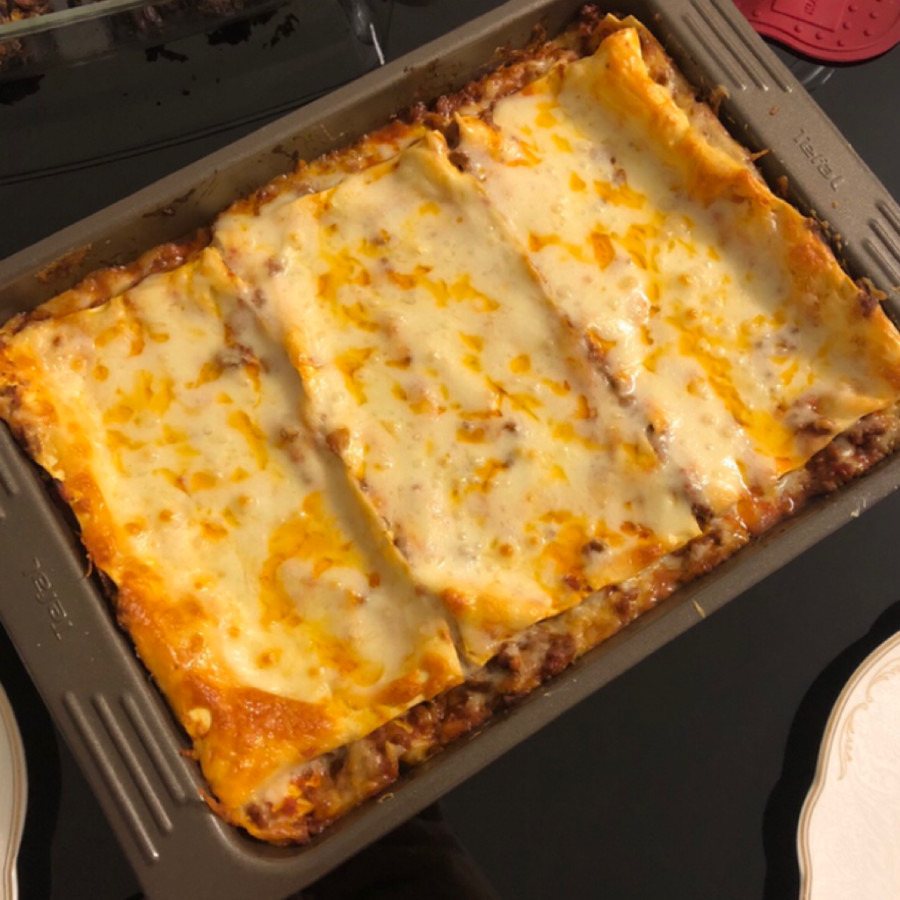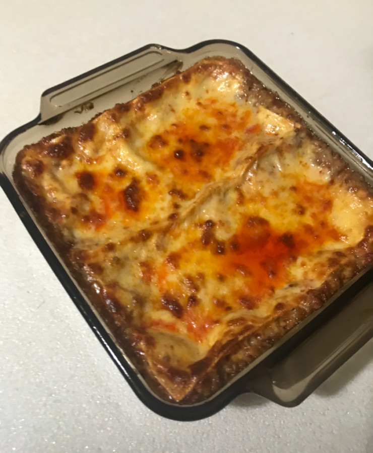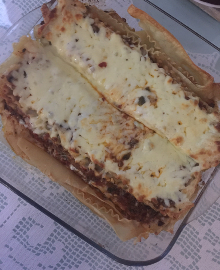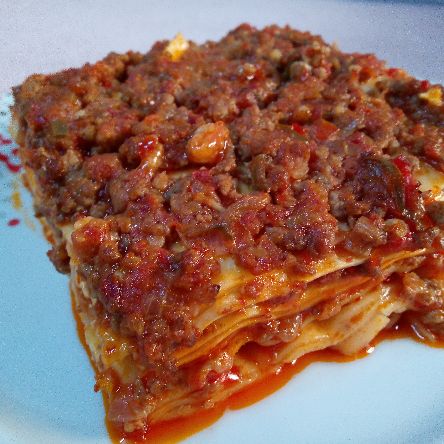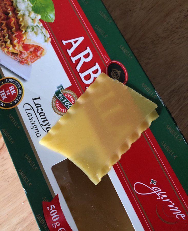 Temel olarak makarna dilimlerinin üzerine bol domatesli kıymalı bir sos, onun üzerineyse beşamel sos dökülerek yapılan çok katmanlı bir yemek. Oldukça meşakkatli görünse de yapımına başladıktan sonra hiçte zor olmadığı anlaşılıyor.