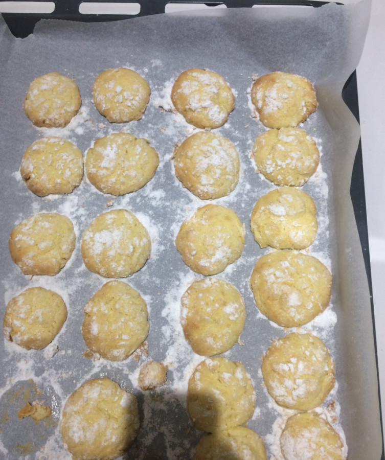 - Kalan pudra şekerini de kurabiyelerin üzerine serpin,