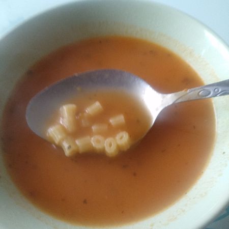 Çorbanın yapımı çok basit. Normal domates çorbası gibi hazırlanıyor ama içine makarna ekleniyor. Ama dikkat edilmesi gereken birkaç noktası var. Makarnalar normalde pişerken olduğu gibi karıştırılmadıkları takdirde dibine yapışır. Makarnaları ekledikten sonra çorbayı sık sık karıştırmakta fayda var.