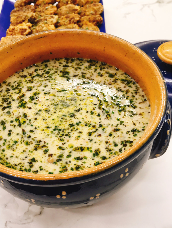 - Çorbanın suyundan 1-2 kepçe alıp yoğurtlu karışıma ekleyin ve hızlıca karıştırın,