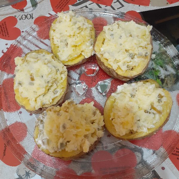 Kumpirin içine koyacağınız şeyler tamamen size kalmış. İçlerini çıkardıktan sonra tereyağı, tuz ve peynirle karıştırıp geri koymak tarifin temeli. Üzeri tamamen sizin hayal gücünüz. Benim normal kumpir tarifime göz atabilirsiniz değişik fikirler için. O tarif oldukça zengin çünkü.