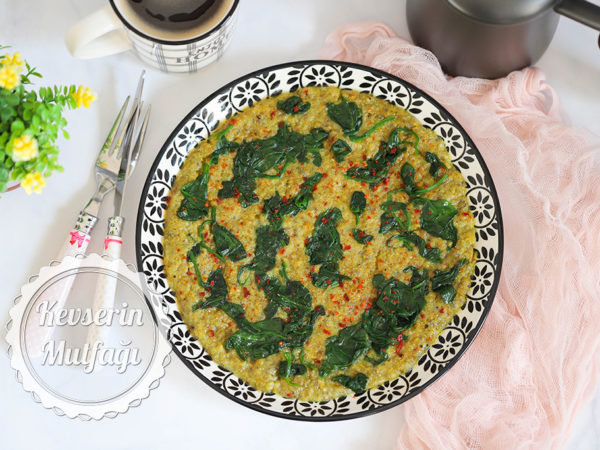 - 1 yemek kaşığı kavrulmuş ıspanak veya herhangi bir sebze,