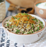 Ben bir kısmını pilavı demlenmeye almadan önce pilavın içine ekleyip karıştırdım. Kalanını da servis sırasında üzerine koydum. Siz de benim gibi yapabileceğiniz gibi tamamını içine karıştırabilir ya da üzerinde servis edebilirsiniz.