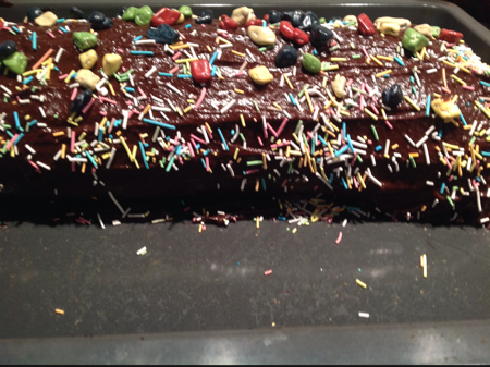 Üzerinin süslemesi de yine size kalmış. Meyvelerle süsleyebilir, sade bırakabilir ya da benim yaptığım gibi çikolata rendesi kullanabilirsiniz. Çikolata rendesini çikolatayı rendenin kalın kısmıyla rendeleyerek elde ettim.