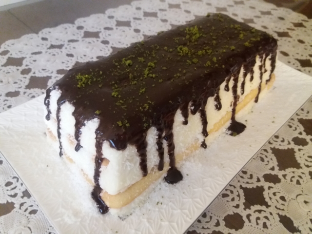 - Ters çevirip servis tabağına alın ve yan taraflarını hindistan cevizi ile kaplayın,