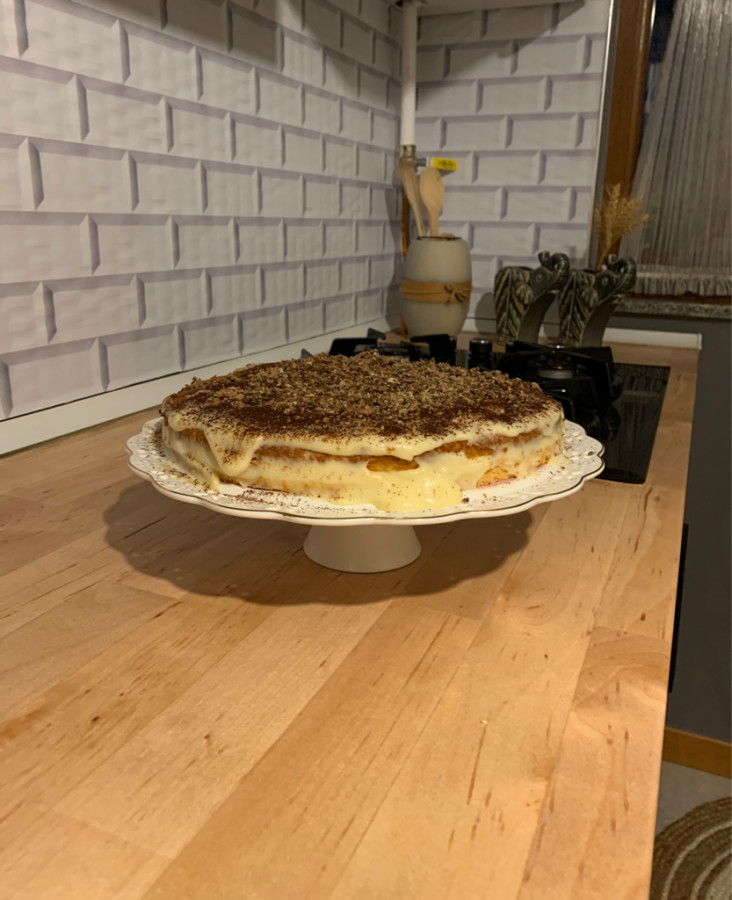 Daha önce yazdım mı bilmiyorum ama yaş pasta yapımı en başarısız olduğum konulardan biri. Şahane pandispanya yaparım, bir pasta kreması yaparım parmaklarınızı yersiniz ama iş ikisini birleştirmeye gelince o konuda tam bir beceriksizim. Ya yamuk olur, ya süslemesi güzel olmaz, illa bir kusuru olur yani. Bu pasta da mükemmel görünmüyor biliyorum. Ama lezzeti muhteşem. Ben de tarifini paylaşıp süslemesini sizin yaratıcılığınıza bırakmaya karar verdim.