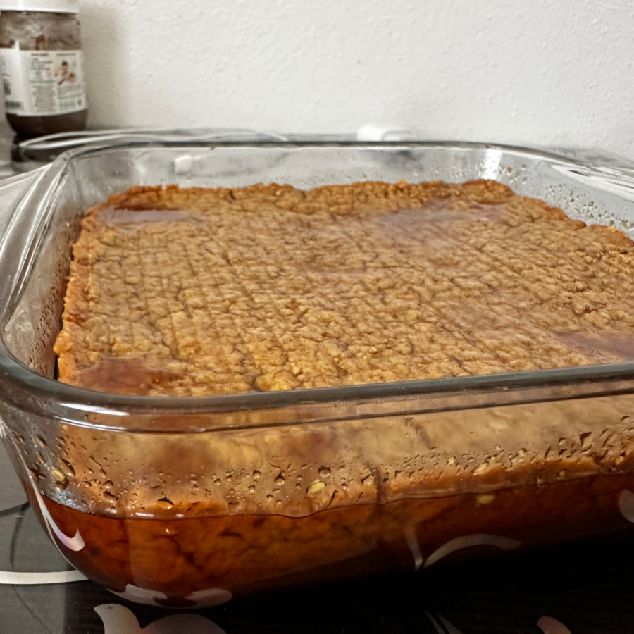 Bu arada çok gevrek bir hamuru olduğu için şerbetini ilk döktükten sonraki kıvamı hamurumsu oluyor. Buzdolabında bekledikten sonraysa helvamsı bir kıvama ulaşıyor. O yüzden tatlıyı dilimlemek ve servis etmekte acele etmeyin.
