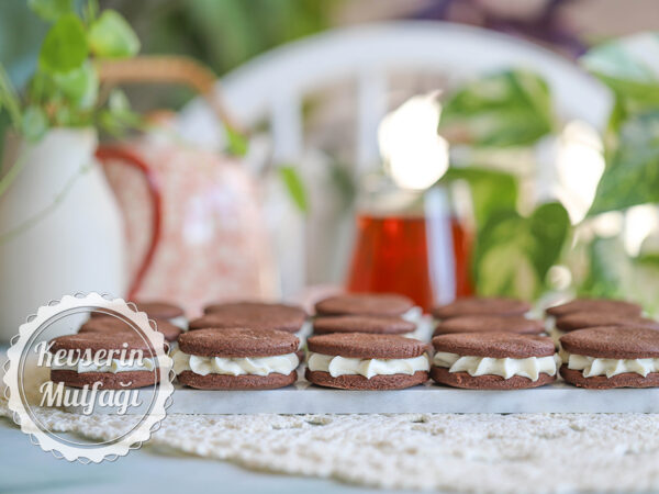 - Bisküvilerin diğer yarısını krema sıktığınız bisküvilerin üzerine kapatın,
